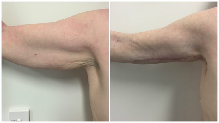 Patient 1 : 64F patient underwent a Brachioplasty procedure. Post operative photos taken at 4 months.