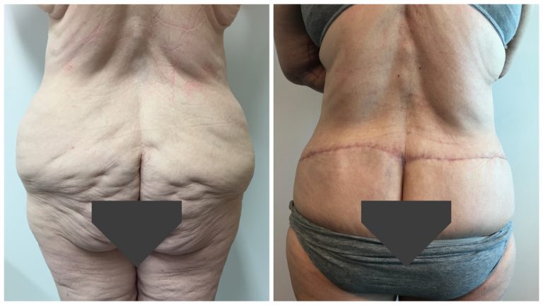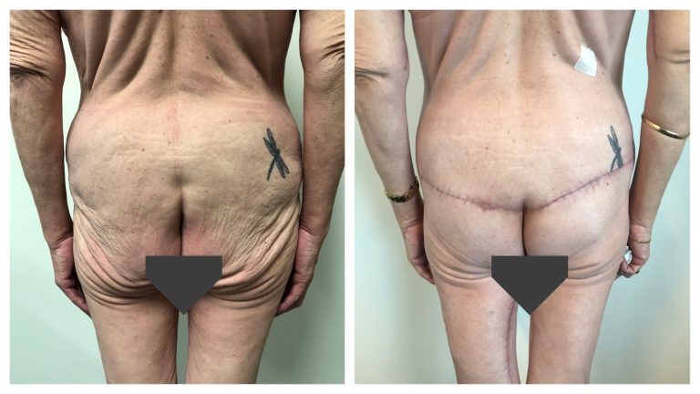 Patient 3 : 64F patient underwent a Buttock Lift procedure. Post operative photos taken at 4 months.