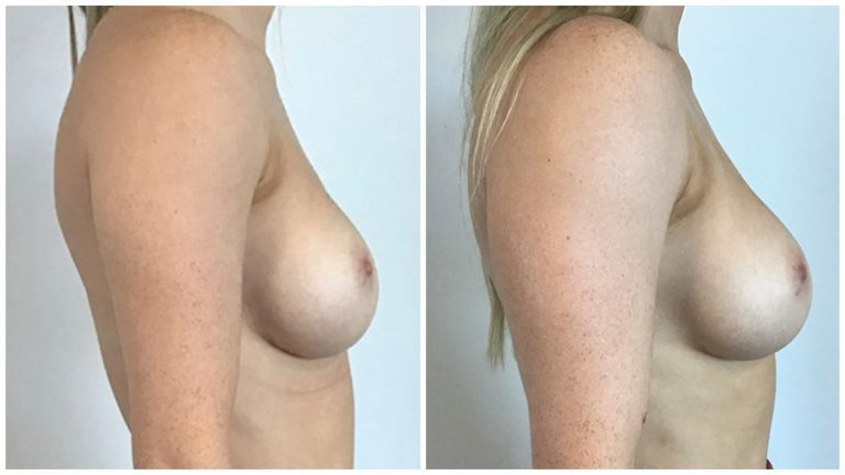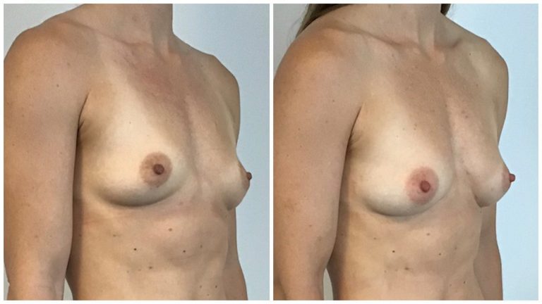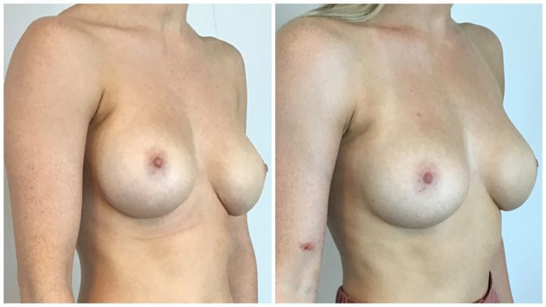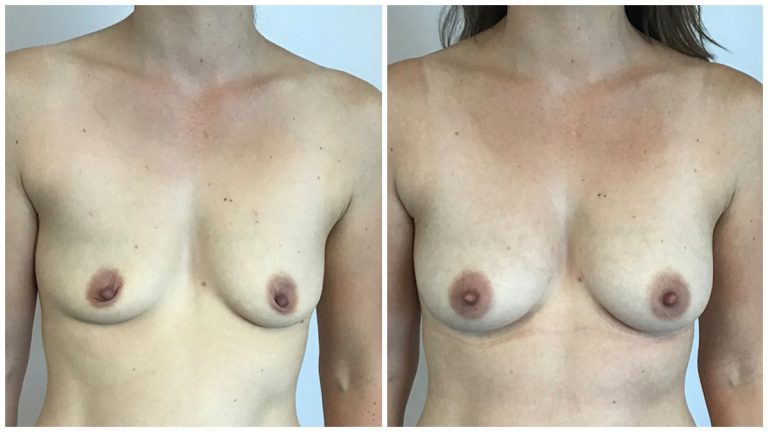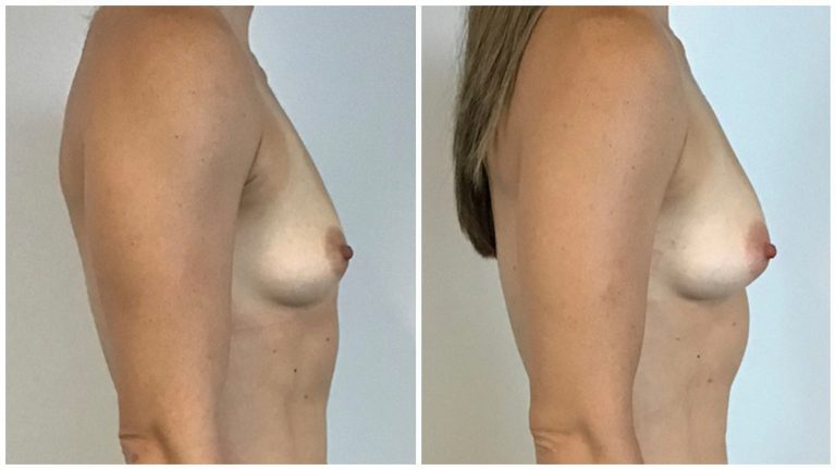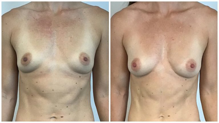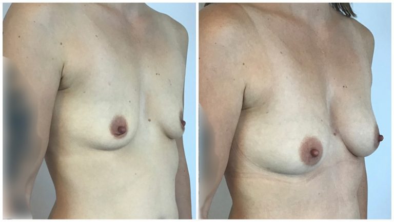 Patient 44 : 44 year old female underwent Fat Transfer to the Breasts. 220cc of fat was transferred into each breast. Post operative photos taken at 8 months.