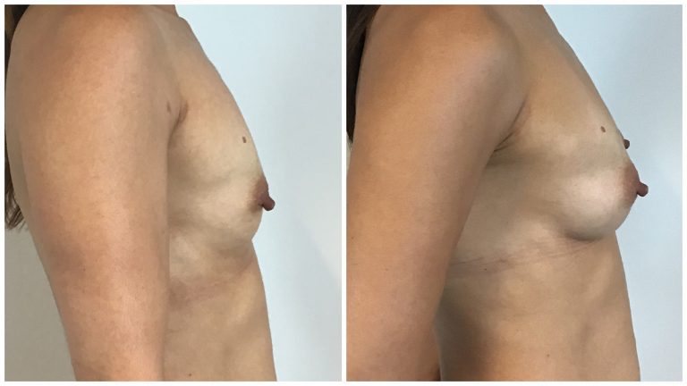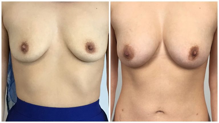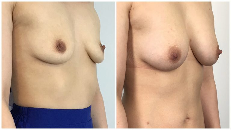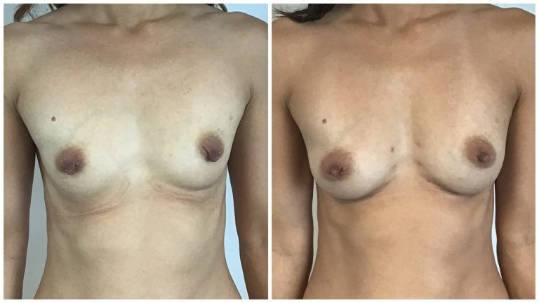 Patient 45 : 31 year old female underwent 2 stages of Fat Transfer to Breasts. 250cc of fat was transferred into each breast during 1st and 2nd stage. Post operative photos taken at 2 months post 2nd stage.
