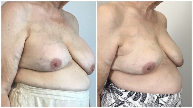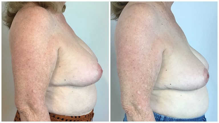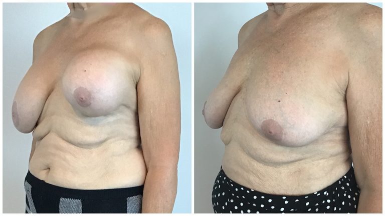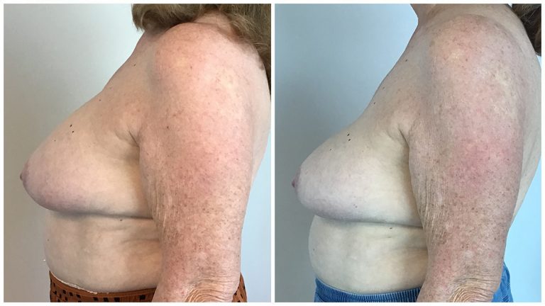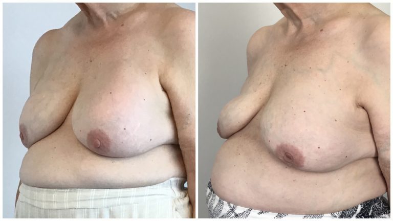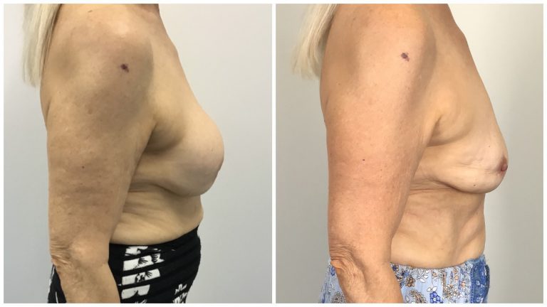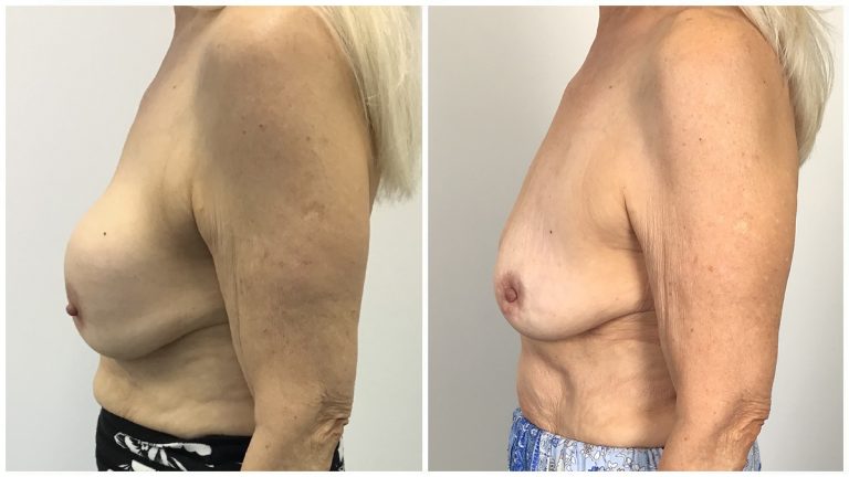 Patient 4 : 73 year old female patient underwent Removal of Implants with Capsulectomies due to ruptured breast implants. Postoperative photos taken at 4 months.