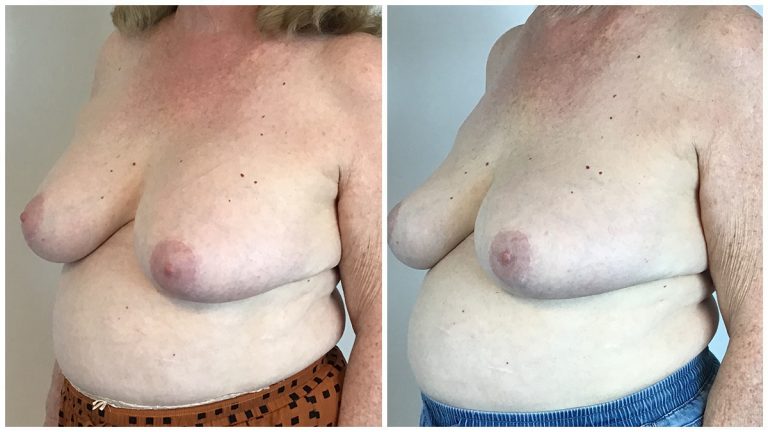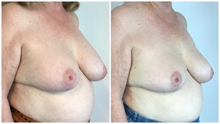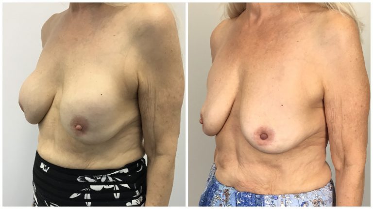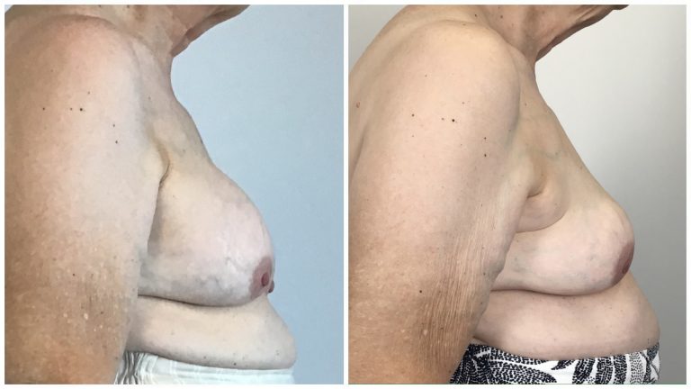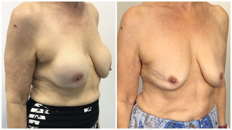 Patient 6 : 50F patient underwent Removal of Implants + Fat Transfer to the Breasts. 160cc of fat was transferred into the right breast and 150cc was transferred into the left breast. Post operative photos taken at 10 months.